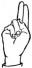 На ћирилици написано НИНА РУЧНОВ састоји се из 10 слова [?]. Исписано ћириличном једноручном азбуком за глувонеме: